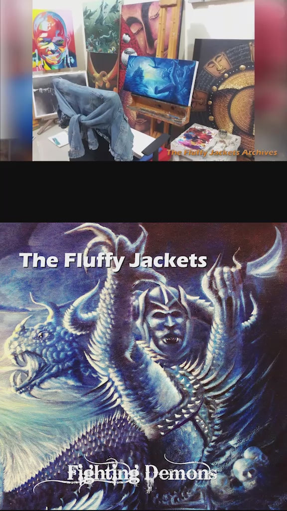 The album artwork is a painting specially commissioned by The Fluffy Jackets. "Fighting Demons" (oil on canvas) is painted by the artist Parichat Mekmanee.